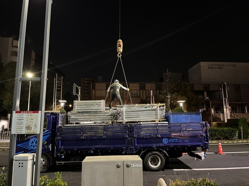 上げ下ろしの作業は人の少ない夜間に実施しています。